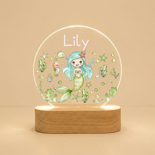 Acrylic LED night light with mermaid name sign, personalized nursery decor, kids bedside lamp, under the sea room accent, custom gift