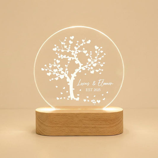 Acrylic LED Night Light with Custom Names, Tree of Hearts Design, Anniversary Wedding Gift, Couple Keepsake, Personalized Room Decor