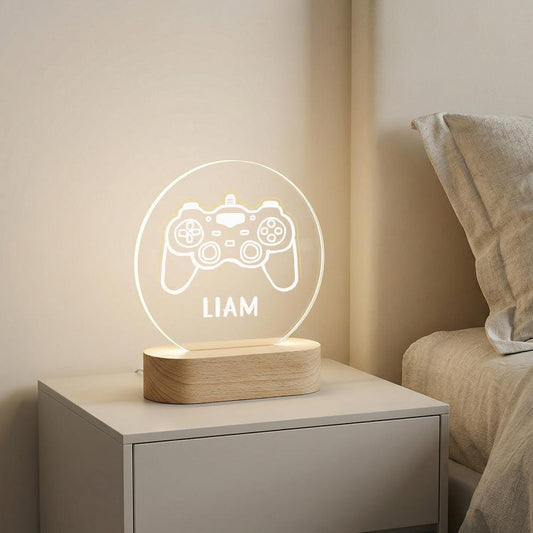Acrylic LED night light with game controller icon, personalized name lamp, USB base, gamer room desk decor, custom boys gift